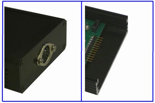 LEDとの結合は、左図のようにコネクタで結合するか、ピンソケット(ピッチ2.54mm,12ピン)で結合します(右図)。光出力のパルス幅や立ち上がり時間を短くしたい場合は、ピンソケットにて結合線をできるだけ短くしてください。LEDの固定と冷却は、大出力パワーによる発熱に注意してご使用ください。(LEDをご指定くだされば、固定したLEDもご用意できます。お問い合わせください。 |